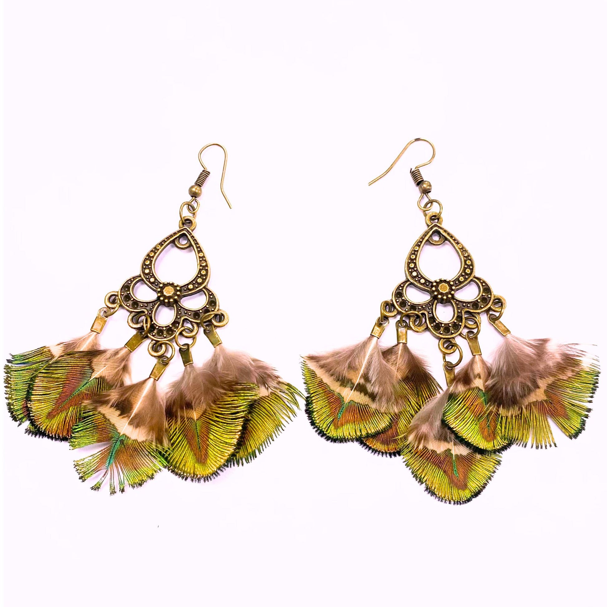 "Introducing our 'Stunning Peacock Feather Chandelier Earrings' — a mesmerizing blend of elegance and bold style. These statement earrings feature lush, natural peacock feathers that cascade in a chandelier design, showcasing vibrant hues of iridescent green, blue, and gold. Lightweight yet eye-catching, they bring a sense of grace and exotic beauty to any outfit, perfect for those who love making a grand entrance. Elevate your look with the unique charm and undeniable elegance of these handcrafted earrings!"