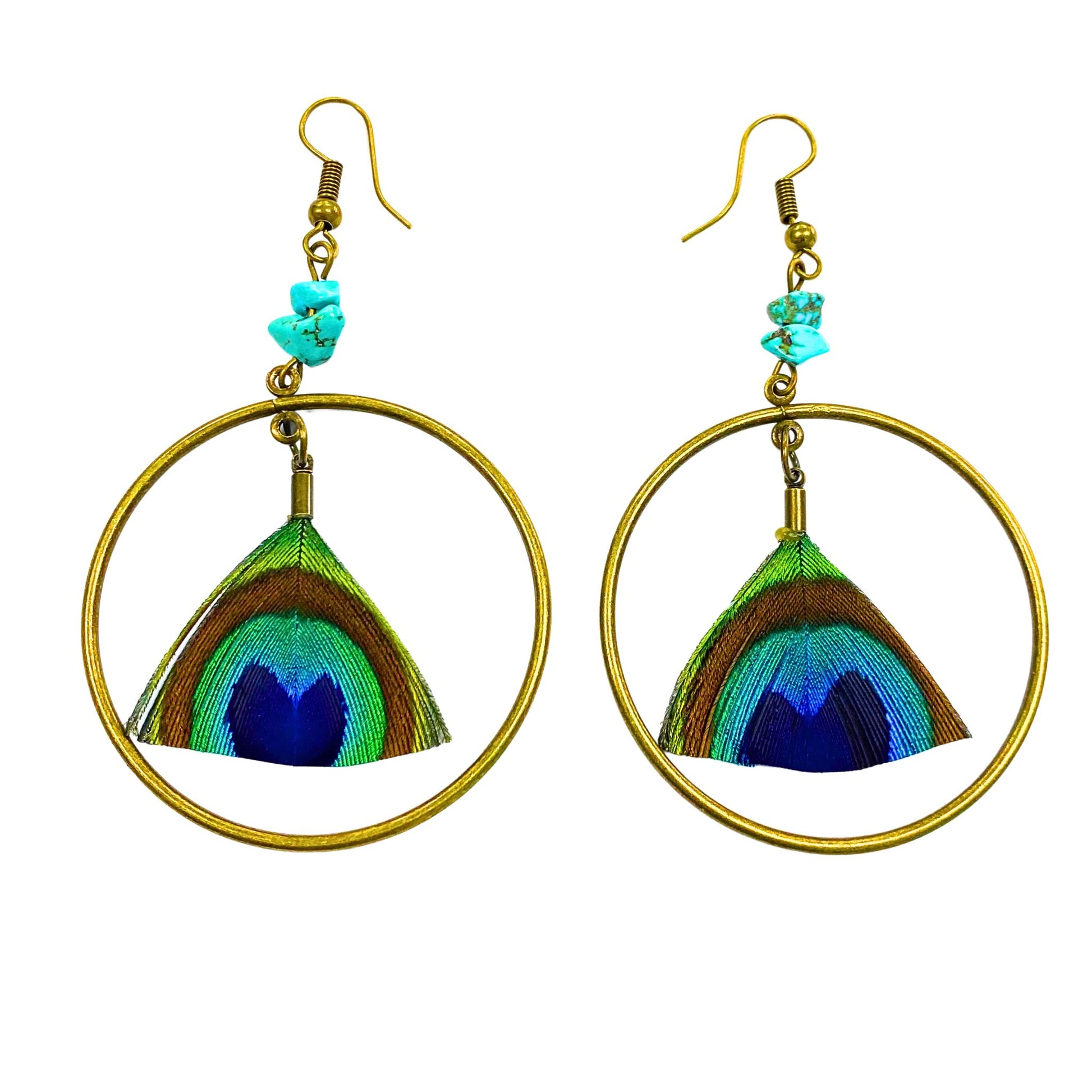 Make a bold statement with our Peacock Hoop Feather Earrings, where natural elegance meets artistic flair. Featuring vibrant, hand-selected peacock feathers gracefully suspended from sleek hoops, these earrings are further enhanced with delicate bead accents for a touch of sparkle and texture.